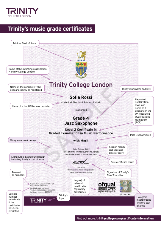 Trinity College London è un ente certificatore internazionale con oltre 140 anni di esperienza nella valutazione delle competenze musicali. Le sue certificazioni sono riconosciute a livello globale e offrono qualifiche accreditate per studenti e professionisti della musica.
